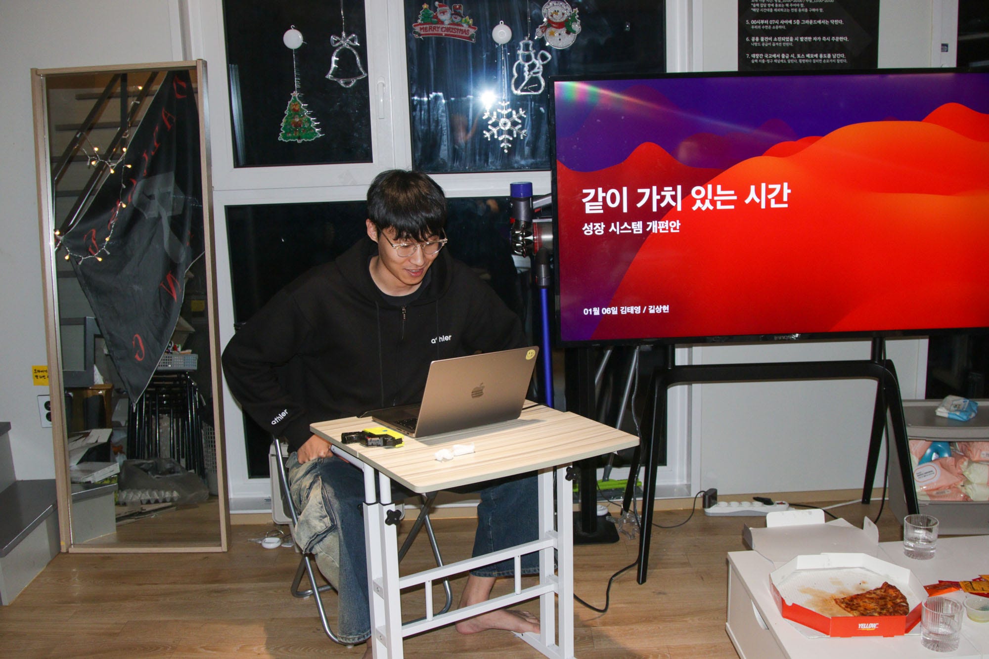 올해 1분기에는 태훈이가 대장으로 부임하면서, 태영이와 상현이가 월요일 세션을 총괄하게 되었습니다. ‘같이 가치 있는 시간’을 슬로건으로, 지난 1월부터 월요일 시간은 ‘인사이트 세미나’ 시간으로 진행하고 있습니다. 서로에게 도움이 되는 것으로 하되, 배움을 전하는 것이면 뭐든 괜찮다는 조건으로요.