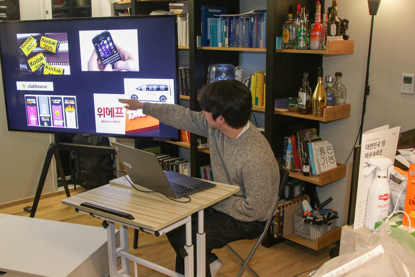 8회차 대장간 인사이트 세미나에서는 선물 서비스 Wishes를 만들고 있는 현모는 4가지 실패 사례로부터 배올 수 있는 비즈니스 교훈에 대해서, 사주 서비스를 만들고 있는 홍기는 새로운 일을 잘 시작하는 사람들의 특징을 주제로 세미나를 진행했어요. 특히 홍기의 세미나에서는 2인 1조로 토론식 세미나를 진행했습니다.
